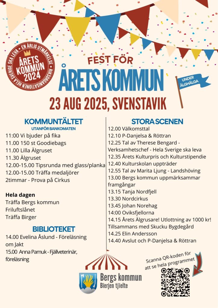 Den 23 augusti bjuder Bergs kommun in till fest för att tillsammans fira att de blev Årets kommun 2024.