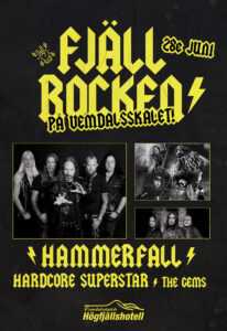 Vemdalsskalets högfjällshotell presenterar sommarens stora rockfest, Fjällrocken! Upplev fjällen i sommarmiljö samtidigt som denna helgalna festival tillsammans med Sveriges mest legendariska rockband, Hammerfall, Hardcore Superstar och rockbrudarna The Gems!