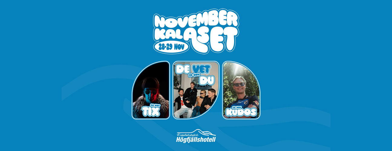 Den 28–29 november fylls Högfjällshotellet av musik och fest när De Vet Du står på scen tillsammans med Tix och Kudos. Två dagar med hög stämning och oförglömliga upplevelser väntar.