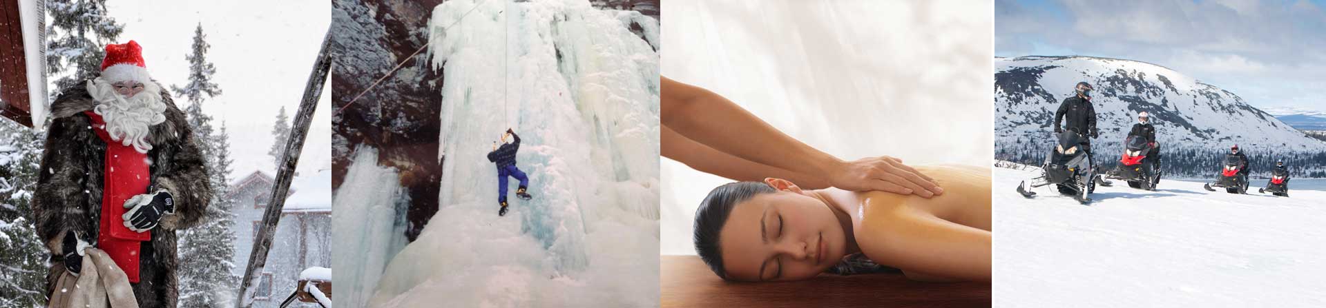 9. Isklättring. För den som älskar utmaningar och äventyr. Med vassa yxor i händerna och stegjärn på fötterna klättrar du uppför fallets isvägg. Läs mer.