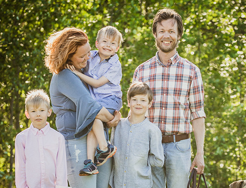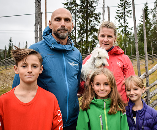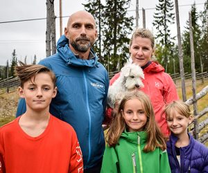 Peter Dahlbäck 43, Erika Kluge 38, Sixten 9 år, Nils 7 år och Bo 5 år. De flyttade från Stockholm till Klövsjö för 9 år sedan.