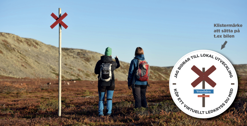 Nu finns det möjlighet för dig som älskar destination Vemdalen att bidra till lokal utveckling genom att årligen köpa ett virtuellt ledkryss. Pengarna går oavkortat (exkl. avgifter för betalningar) till lokal utveckling, och genom att fylla i din mailadress får du årligen ett mail från oss där vi berättar vad pengarna har gått till. Du får även ett klistermärke som du kan hämta på turistinformationen på skalets torg. Visa bara upp ditt kvitto så får du klistermärket som passar perfekt på bilen eller varför inte takboxen.