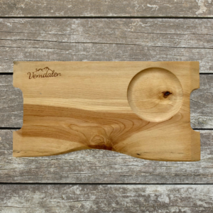 Vemdalen träbricka, med en urgröpning för kaffemug…